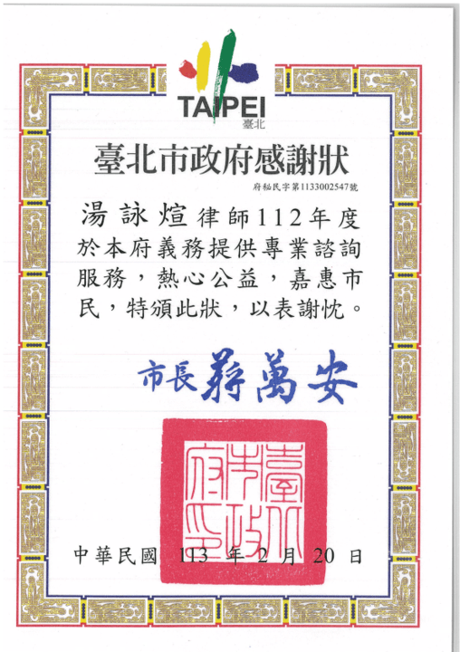 讓湯律師協助你解決一切法律相關的疑難雜症,